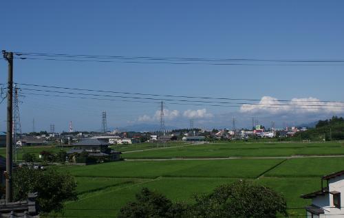 今日は久しぶりの青空なので、管理人の家から北の方向にある村上市の山並みを撮った写真を添付します。