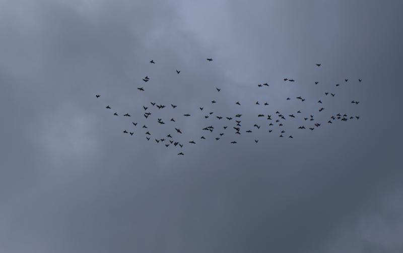 外に出て見ると昨日とは違って一つの集団で気持ち良さそうに飛んでいます。