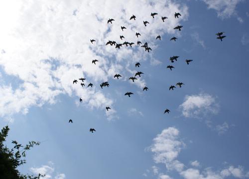 下で飛んでいた鳩くんは10分もすると降りて来ましたが、集団で飛んでいる鳩くんは気持ち良さそうに高く飛んでいます。