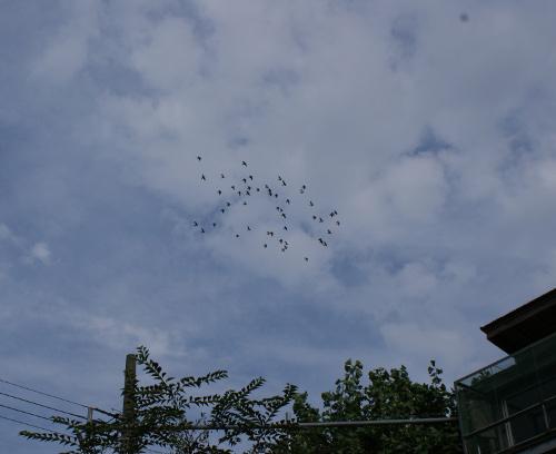 その他の鳩くんたちは空高く気持ち良さそうに一つの集団が飛んでいますが、今日は「猛禽ちゃん」の出没がないことを祈る管理人です。