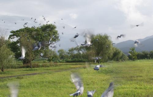 飛び出しの遅い鳩が数羽いたので、やはり重めの鳩がいたようですが全鳩一団となって消えて行きました。