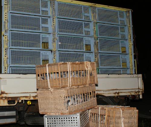 これも、弱小連合会の小回りの良さですが、運転手のToさんには感謝感謝です。 結局、参加予定の第一陣選手鳩110羽のバスケットの詰め込みが終わったのは19時15分でした。