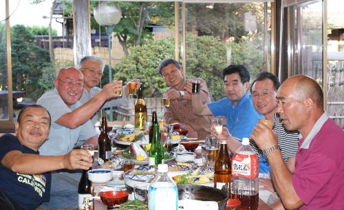 又、店主のKaさんは庭に自分で「露天風呂」「萱葺きの囲炉裏つきの茶室」を造る器用な人で、「露天風呂」で「生ビールで乾杯」もさせて貰って楽しいお祝い会でした。---お祝い会の写真を撮りましたので「ブログに掲載します」