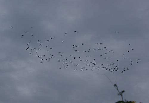外に行って竿を振って追ったら4羽飛び立って集団を追いかけて行きました。