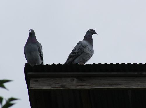 三羽のうち二羽が鳩舎の屋根に戻ってきた時に写真を撮りましたので「ブログ」に掲載します。