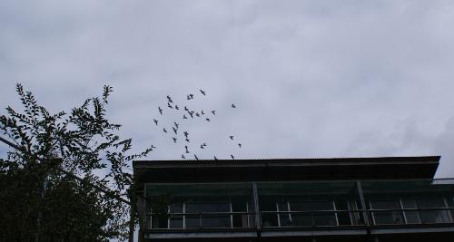 鳩君たちは黒い雲に驚いたのか中々方向判定が出来ずに飛んでいます。