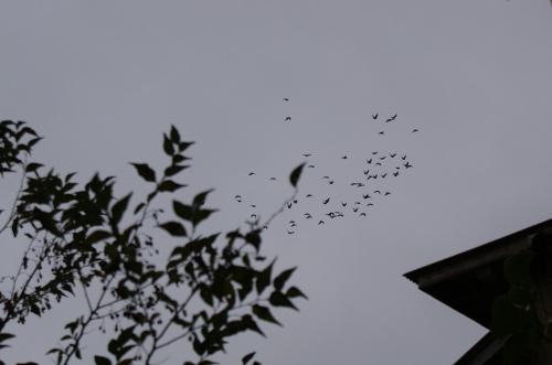 選手くんたちは雲空の中、黙々と飛んでいますが寒いので家に戻る事にしました。