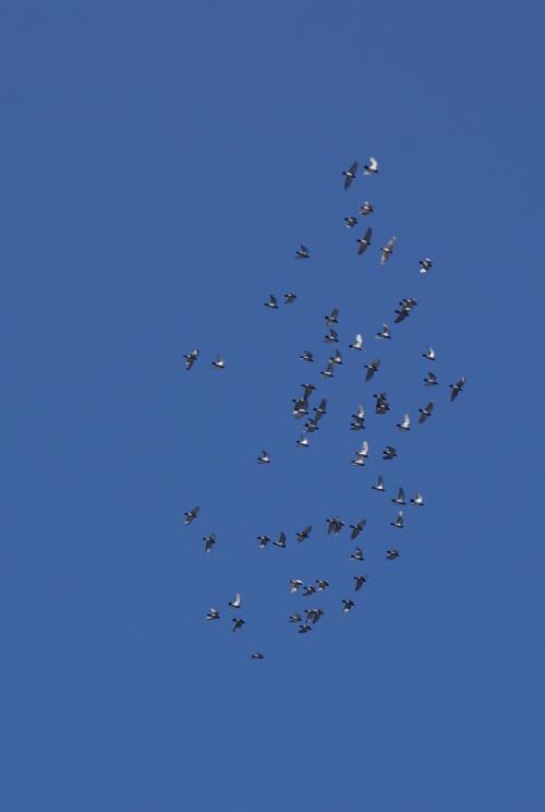 真っ青の空の中を気持ち良さそうに一塊で飛んでいます。