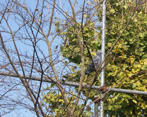 ▼11/26日 猛禽ちゃんの襲撃から避難している鳩くんです。