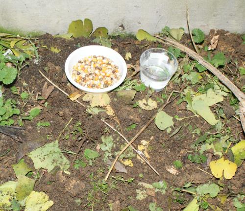 本来なら今日から009号くんも当然飲む予定だったので、鳩舎の直ぐ傍に埋葬して上げてから今日はお腹一杯食べて飲んでもらおうと思って、餌と「乙のどっこん水」をお供えしました。