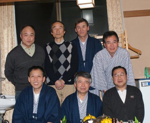 6時前に到着して4人でゆっくり温泉に入って戻ると、一度自宅に帰ったお三人が見えていて、もうPCを開いて目の談義をしていました。