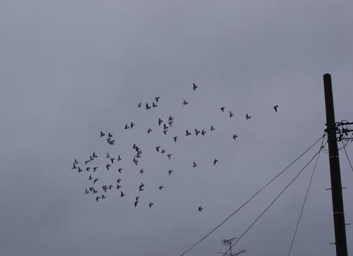 久しぶりに飛んだ鳩くんたちは、バラバラに飛んでいます。