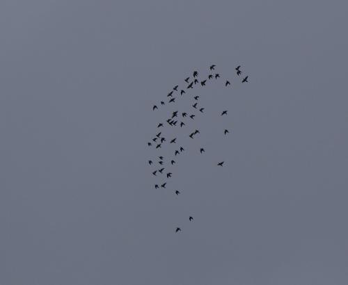 外に行って様子を見ると全鳩くんが飛び立って一塊になって飛んでいます。