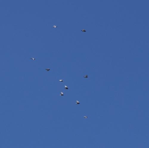 初めて10分位したら鳩くんが2羽、10羽位と逃げ帰って来ました。「猛禽ちゃん」が出たなと思った管理人でした。