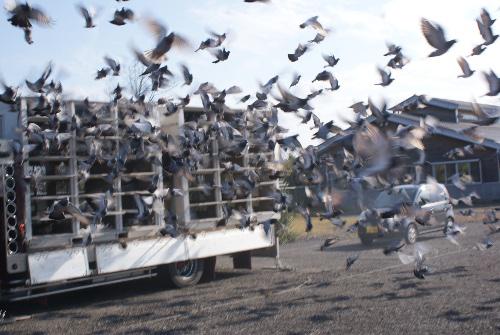 選手鳩くんには、朝と同じ一羽辺り20gの餌を与えると今まで同様に大騒ぎで直ぐに食べ切りました。