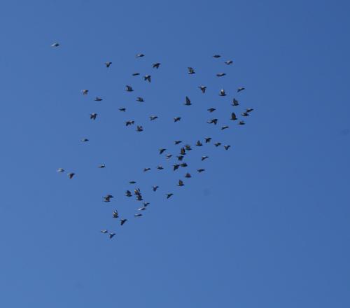 今日は良い天気なので、ドライブを兼ねて嫁さんも一緒に行く事になり、道具を車に積んで11時15分に出発すると、空にはまだ45羽位の鳩くんは空を飛んでいました。