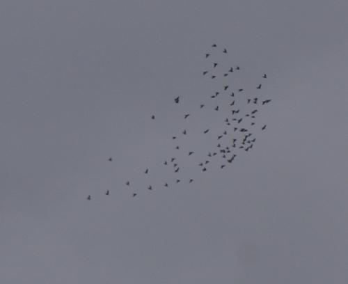 家に戻って来ると10時30分になっていましたが、冷えた体を温めていると10時45分から「ピーピー」と鳴り出しましたが、3羽で止ってしまい11時から又「ピーピー」となって今度は10羽、20分頃に15羽、40分ころに30羽、残りは12時30分ころに全鳩くんが降りて来ました。