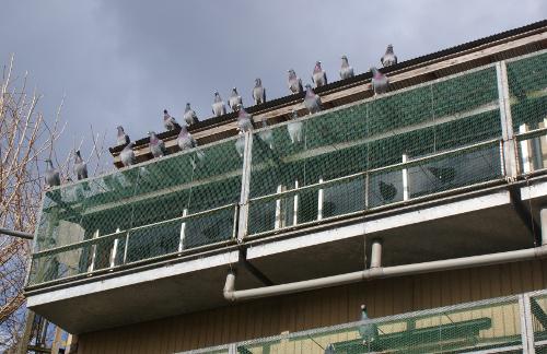 選手鳩くん以外の給餌を終わらしてから、外の鳩くんの様子を見に行くと鳩舎の屋根には何羽かの鳩くんが止まっていたので時間を見ると10時35分になっていたので1時間10分経過していたので、竿で追ってもう一度飛んでもらいました。追うと11羽が飛び立って直ぐに集団に追いついて中に入り込んで飛始めたので、体が冷えて来たので一先ず家に戻りました。