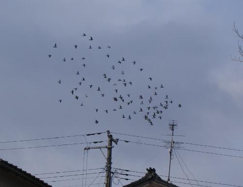 すぐに時間が経って12時35分になって、飛ばしてから2時間25分も経っていたので慌てて入舎口を開けに外に行きました。外から鳩舎の屋根を見ると7羽止まっていたので竿で追って飛んでもらってから、入舎口を開けてきてから家に戻りました。