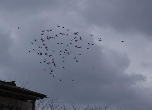 家に戻って「コタツ」に入りながら、冷えた体を温めながら窓越しに外の選手鳩くんの様子を見ていると、10時50分まで一塊で飛んで55羽位が降りて来て、残りの鳩くんたちは12時少し過ぎに降りて来ました。
