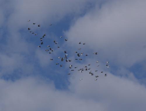 8時45分に飛び立った鳩クンたちは気持ち良さそうに一塊で飛んでいます。管理人はしばらく見ていましたが、今日は色々とやることが沢山あるので他の鳩くんの給餌をしながら監視することにしました。