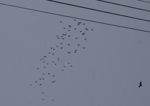 それでも、気にしながら見ていると、11時50分ごろに降りて来て鳩舎の廻りを飛び始めたので窓越しで見ていると、40羽位の選手鳩クンは無事降りてくれましたが残った30羽位の鳩クンは再び何処かへ消えてしまいましたが、その後は姿はみせ無いので12時30分頃に確認に選手鳩舎に行くとやはり戻っていませんでした。