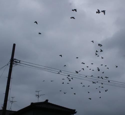 「ニンニク」「水」を取り替えて餌は昨日と同じ量を与えて、ケージと配合室の水と餌を交換して家に戻ると12時を過ぎてしまいました。でも鳩くんたちは「カラス」に追い回されてまだ40羽位飛んでいます。、