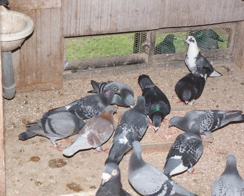 12時過ぎに選手鳩くんの給餌に向かいました。外にはまだ10羽以上遊んでいましたが口笛を吹きながら呼び込んで、昨日の朝より大幅に少ない1400gの餌を与えると見ている前で食べ切って、止まり木に上がろうとしないで床でウロウロしているので「食い込み」登り調子になって来たと喜んで給餌を終わらせて家に戻って来ました。