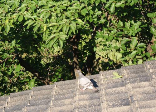 外に行こうとすると、嫁さんから「屋根に飛べない鳩くんがいる!」と言うので、二階に上がって見ると一階の屋根の上に風が強くて飛べない、昨日から舎外をした雛鳩くんが居ました。可哀想に必至に飛ばされないように踏ん張っていましたが薄情な管理人はその写真を撮りましたので「ブログ」に投稿します。