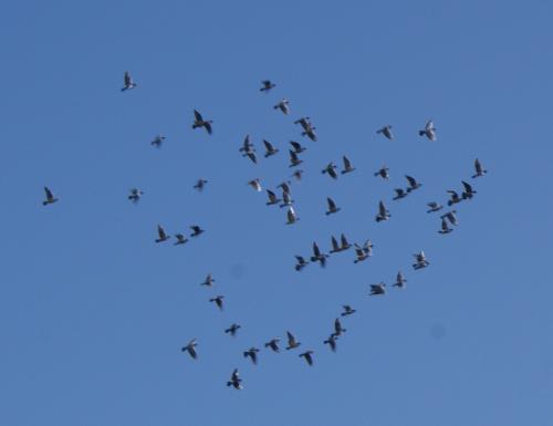 手前の選手鳩舎に居る鳩くんを数えると「86羽」居ました。今日の不参加鳩くんは、舎外を開始したばかりの鳩くんが11羽で訓練不参加が3羽で計14羽で、残りは72羽になるので今日の訓練には73羽参加したので未帰還鳩は1羽のようです。