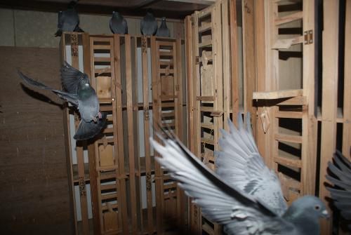 昨日は日曜日にも拘らずに「岡ちゃん」と「T鳩舎」に手伝ってもらって、現在の「♀鳩分離鳩舎」に配合用の巣箱を物置から運んでもらって昨年と同じ場所に置いてもらいました。