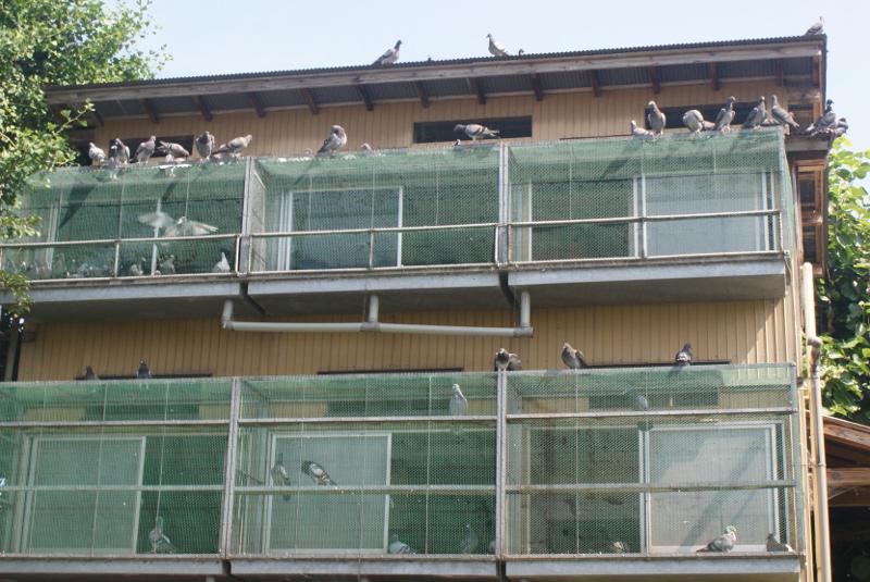 9時を過ぎたので早速選手鳩舎に行って、今日からは「出舎口」から「舎外」に出てもらうので「展望台」には大半の雛鳩くんが集まっていたのでそのまま「出舎口」を開けて棒で追って出てもらいましたが最後の雛鳩くんが出るまでは10分位掛かりましたが全鳩無事に外に出てくれました。外に出た雛鳩くんは5羽位の雛鳩くんが鳩舎の近くを回っていましたが残りの雛鳩くんは観客と成って見ていたのでその時の写真を撮りましたので投稿します。