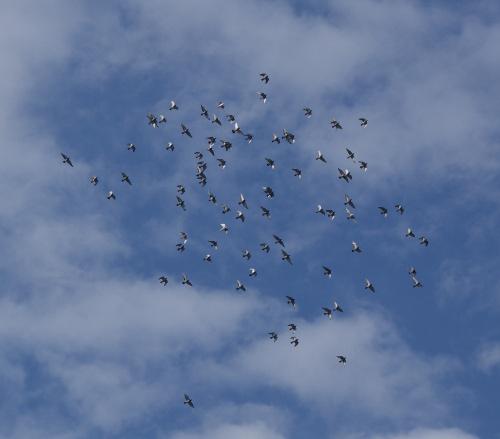 今日は「100羽」位の集団が上空を飛んでいて、低空飛行の鳩くんは「15羽」位がまだ集団を組めずに飛んでいたので「カメラ」を取りに行って「舎外風景」を撮影しましたので投稿します。管理人は余裕をもって舎外を見ていましたが30分もするとあまり暇なものですからこの間に「朝食」を食べようと思って嫁さんに言うと「食べられるよ!」と言うので家に戻って嫁さんと朝食をたべました。
