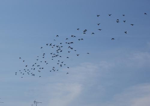 選手鳩くんが集団で飛んでいるので「舎外風景」をカメラに収めたので投稿します。それから選手鳩くんにはこのまま気楽に飛んでもらう事にして管理人は他の鳩くんの給餌を始めました。まだ回収していない「蚊取線香」と「飲水器」を回収してきて「飲水器」は嫁さんに交換をお願いして管理人は「蚊取線香」を掃除して保管場所に持って行くときには選手鳩くんはまだ飛んでいました。
