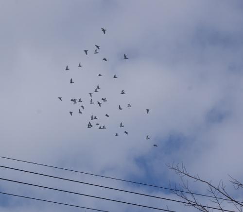 選手鳩くん以外の朝の管理は終ったのですが、鳩くんの姿は又見えなくなって居たので外にいると寒いので家に戻りました。時計を見ると「11時10分」になっていて今日の飛翔時間は「1時間20分」経っていたので何時まで飛んでくれるのか「コタツ」に入って冷えた体を温めながら窓越しに鳩くんの様子を見ていました。