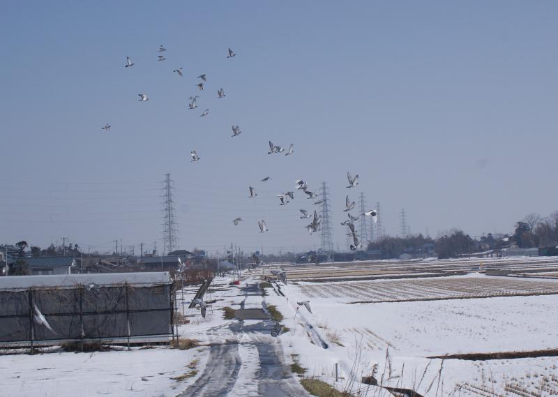 鳩くんたちは「11時15分」に放すと気持ち良さそうに飛び出して一塊になって飛び始めると、傍の電線に止っていた「野鳩くん」たちも飛び立って、下の方を「70羽」位で飛んでいましたが、スピードと高さが違うので混ざりもしないでドンドン高度を上げたので安心して「バスケット」を片付け終わると鳩くんたちも姿が確認出来なくなっていました。---今回の放鳩時の写真を撮りましたので投稿します。