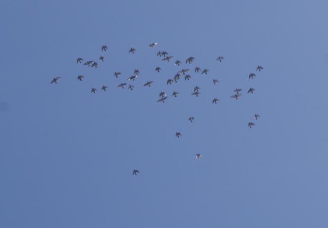 やっとの思いで撮影してPCに取り込んで見ると本当に雲一つない真っ青な空の中一塊で飛んでいました。疲労も抜けて調子は良さそうなので安心しましたが明日持ち寄りの「高岡256Kレース」での帰還率は80%以上超えたことがないので一寸心配ですが逆にこの状態で何%確保出来るか興味津々と言う面もあります。