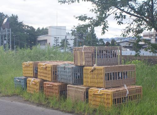 到着してバスケットを下ろして並べて時間を見ると7時8分なので7時30分に飛ばそうと思って、「ブログ用写真」を撮ってから時間まで待ってくから予定通りバスケットの出口を開けて上げると1羽を除いて自力で出てくれたので「頭が良い!」と思って飛び立った鳩くんの行方をみていました。---「バスケットで待機中の写真を掲載します。