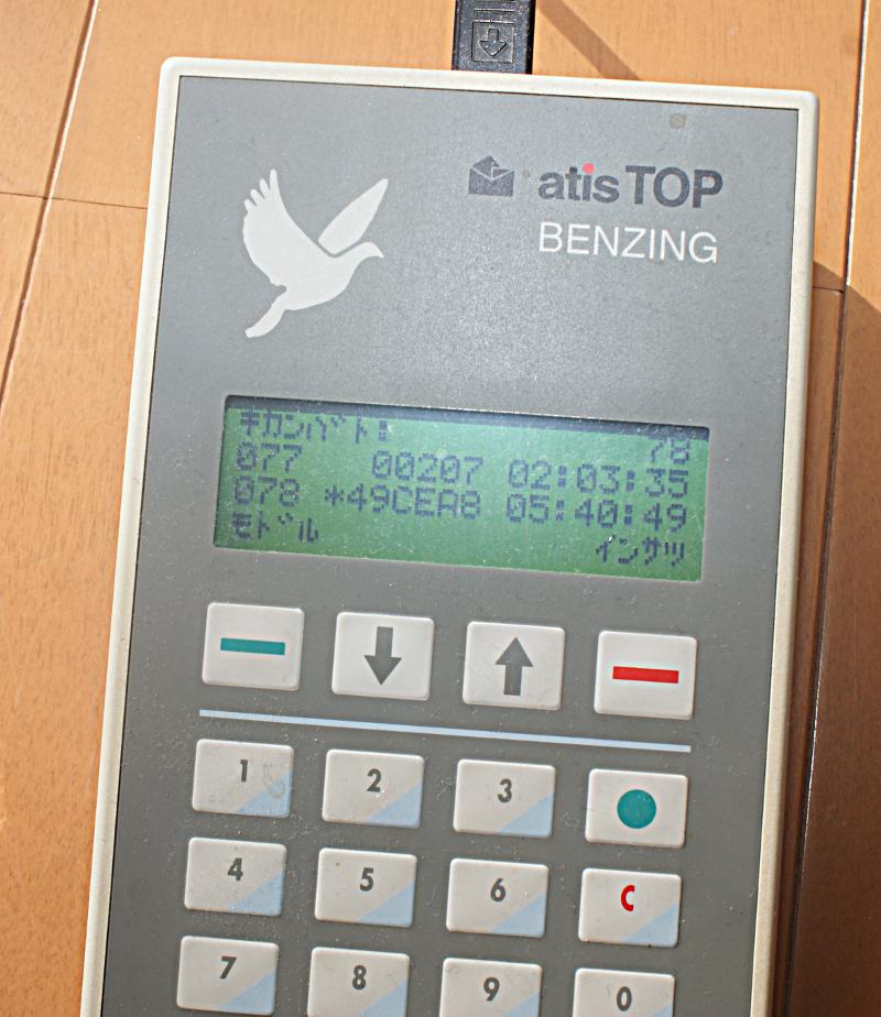 他の鳩舎では夜間鳩のお話を良く聞きますが、管理人の鳩舎では夜間鳩の経験がないので何となく実感が沸かないのですが「アティストップ」を覗くと間違いなく昨日より帰還数か゜「78」と2羽増えていたので時間を見ると確かに「2時03分」と表示されていて、その次も「5時40分」と表示されていますが脚環番号は表示されていないので「迷い込み鳩くん」か明るくなって外に一旦出て再度入舎して来たかどちらかですが1羽は間違いなく管理人の鳩くん「13FF00207」でした。