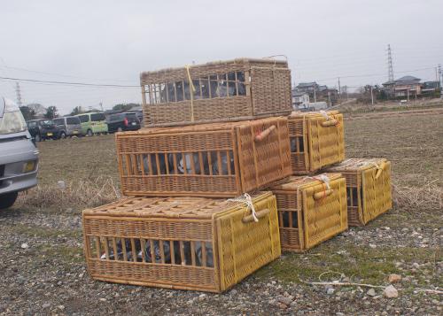 でも、遅く起きた上に朝の弱い管理人にとっては何時のようにユックリしていると放鳩地に到着がお昼を過ぎてしまうので、なるべく急ごうとスタートを切りました。何時通りの定番コースを成るべく急いで終わらせて、9時少し前に鳩舎に向って「バスケット」6個「小さいバスケット」2個を用意して選手鳩くんを詰め込み始めました。
