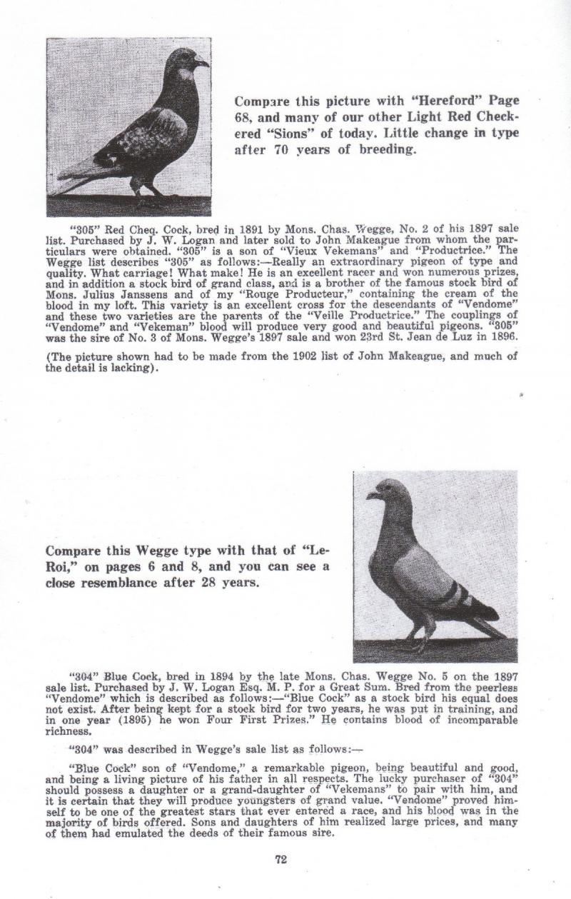 その「ウェッゲ鳩舎」━イギリスの「ローガン鳩舎」へ導入されているそうです。偶々「1897年」に「ウェッゲ鳩舎」のオークションで「ローガン鳩舎」が落札した2羽の鳩くんの写真が友人より送ってもらったので「ブログ」に掲載しますが、記事の内容は全然わかりません。でも鳩くんは今でも十二分に活躍できる体型していると感じました。