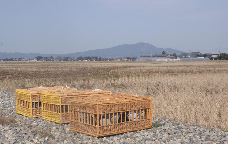 「41羽」の鳩くんを「バスケット」に詰め込んで出発すると丁度8時になっていました。今日の訓練は「巻IC」傍で、前回行った時も「PM2.5」「黄沙」で視界1Km位という最悪でしたが、今日も余り良く無いので「何かの縁」かと思って走りながら周りを見ていると村上の山並みがやっと見えるので18Km離れているので大丈夫だと思って走って行きました。