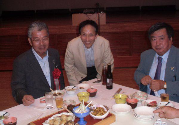 何時ものことですが、何の打ち合わせもなく「懇親会」の式次第が貼ってあるのでそれに沿っての進行ですが、「乾杯」が抜けているのに「会長挨拶中」の時に気が付いて急遽「T相談役」に「アイコンタクト」でOKを貰って乗り越えて「懇親会」がスタートしましたが、後「式次第」に書いてあるのは「総合優勝者挨拶」と「閉会挨拶」だけなので後は「鳩オークション」だけでそれ以外は管理人のアドリブになりました。---会長さんと小黒ブロック長を両隣にして写真を撮りましたので掲載しますが、頭の生え際が上がり過ぎてガッカリしている管理人でした。