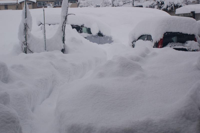先週に降った「雪」が消えたので、月曜日には代車に履かせていた「冬タイヤ」をやっと自分の車に履かせようと思って居たら日曜日の夜から月曜日の朝までにこの冬三回目の大雪でなんと「70Cm」位積もっていて身動きが出来ません。