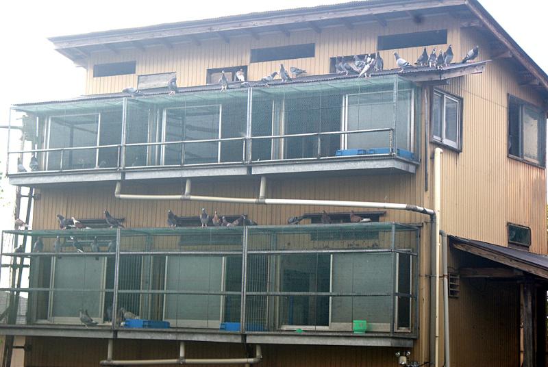 選手鳩舎に戻って再び一羽一羽出して上げると丁度一時間掛かってしまいました。嫁さんにお礼を言って下りて外から鳩舎を見上げると周りには「45羽程」の姿は確認できましたがその他の鳩くんたちは何処に行ったのか?