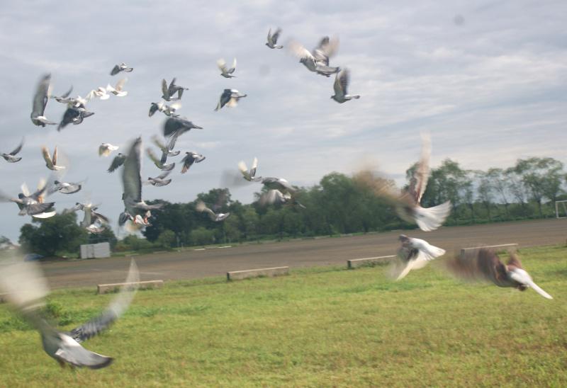 休養は「丸4日間」したので、どんな飛び方をするのか?気にしながら始めると管理人の心配を他所に「70羽位」の鳩くんが一塊になって遥か上空を飛んでいて、その他の鳩くんは低空飛行でしたが、まだ良く飛べ無い鳩くんが元々居たので「問題無し?」と合格点の「舎外」となりました。