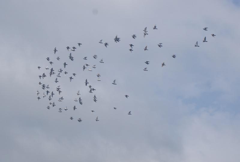 鳩くんたちはやっと一塊になって飛べるようになって「青空」が広がって来た上空を気持ち良さそうに飛んでいます。飛び方もスピードが乗って来て一塊の集団で「ジグザク飛行」も見られるようになって「これなら来週からの『訓練』に間に合う?」と心の中でつぶやきました。