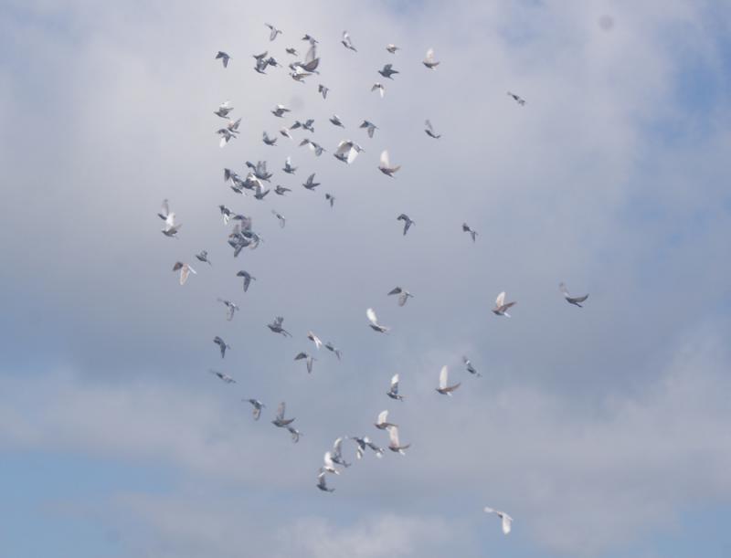 落ち着かないのは鳩舎までの距離感がつかめなくてイライラしていたのでは?と管理人は考えました。そのために何処に行ったら良いのか?分からなくて方向判定が出来ないまま逆の方向で旋回しているのでは?中断する訳には行かないので集団行動が取れずにそのうちに空中分解でバラバラになるのでは?と勝手な想像をしています。