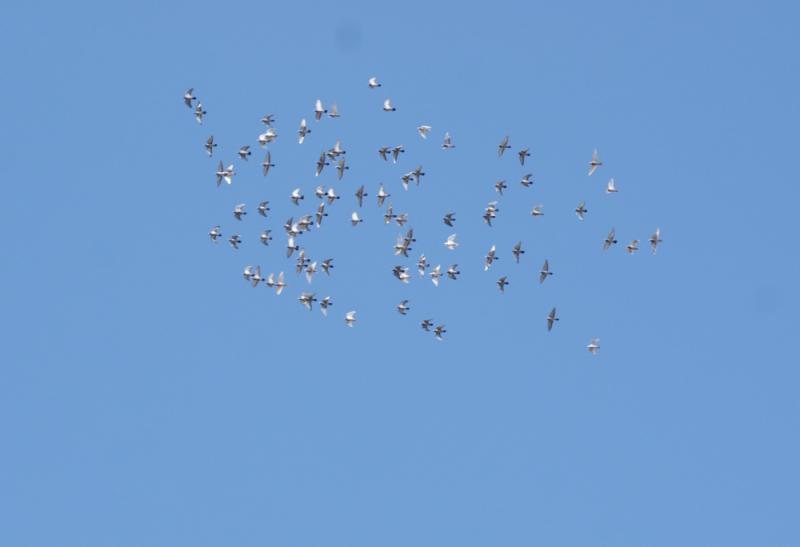 鳩くんたちも負けじと高度を上げて同じ位か上で飛び始めて海の方向へ離れて行くと、今日はどうした訳か追う事も無く優雅に山の方へゆっくり飛んでゆきました。