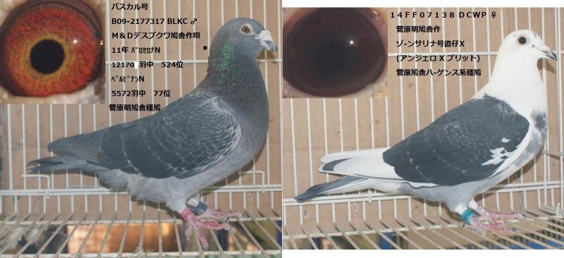 父親”パスカル号”「BV09−2177317 BLKC」デブスクワ兄弟鳩舎作翔 11年ペルビナンN5472羽中77位 同IN15107羽中264位 バルセロナN12170羽中524位入賞鳩で、ロジャー・バルセロナ号父親の”ド・エミール号”の孫鳩です。---掲載写真参照してください。